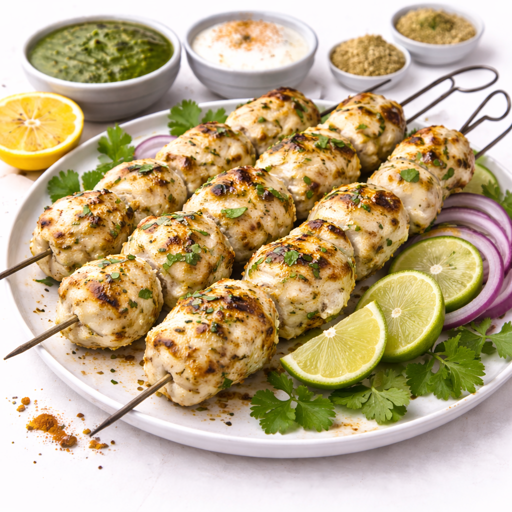 Tandoori grill csirke, hagymaszósz, paradicsomszósz, kókuszpor, tejszín